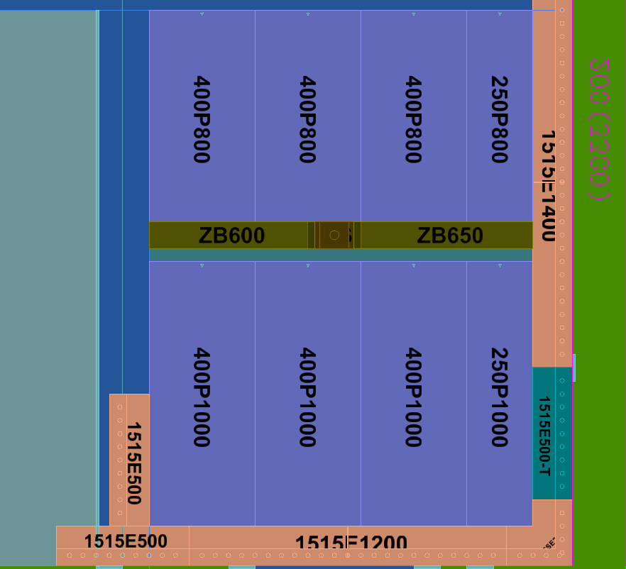 点击自动配模中“板”按钮,选中需要配模的板,在左侧栏目中根据需要设置C槽高度、C槽宽度、第一块板长以及“规则设置”等参数,然后点击“自动排布”按钮,如果需要继续选择配板,点击“应用并继续”按钮,如果不需要继续自动配板,则点击“确定”按钮,如图3-2-1某工程自动配板完成的示例效果。