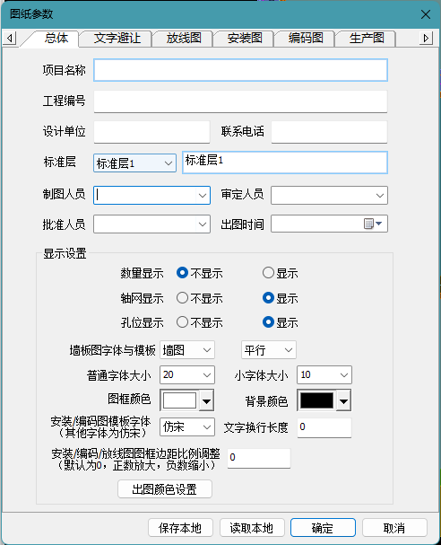 (3)点击“图纸参数”如图3-3-1,根据需要设置图纸的格式,放线图、拼装图、编码图、生产图等图纸相关说明(可参考6.5.1);