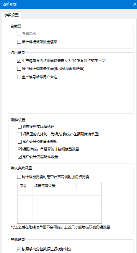 (1)对清单参数进行整体设置,如图3-3-2;设置好后点击确认保存。