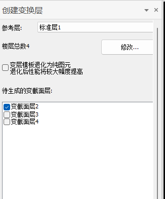 在标准层中创建好变截面构件,点击创建“创建变截面层”,根据工程需要进行变截面的创建,可以在此处进行楼层数的修改,也可在“工程参数”里进行修改。