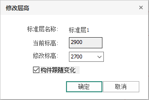 点击“修改层高”,主要针对当前标高,修改墙的高度,其他结构件对应上浮。