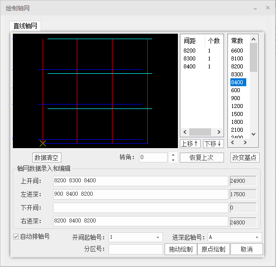 (4)点击原点绘制或者拖动绘制,建立轴网;