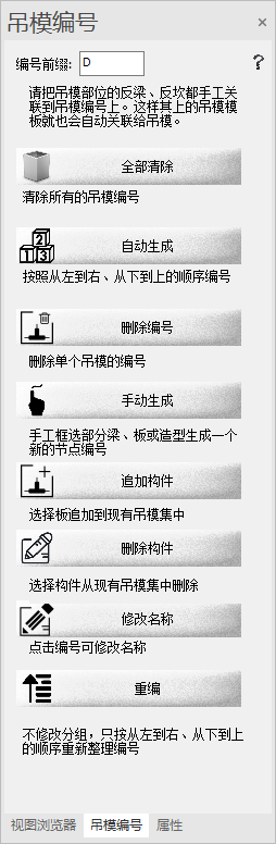 点击“重编”按钮,则会将现有的吊模重新编号。