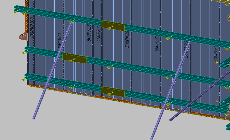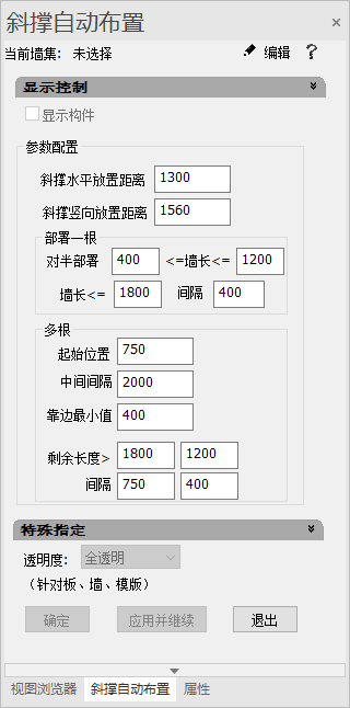 (2)左键选择工作区中的墙集,点击“自动排布”,系统按规则在内墙生成斜撑;