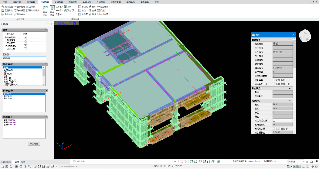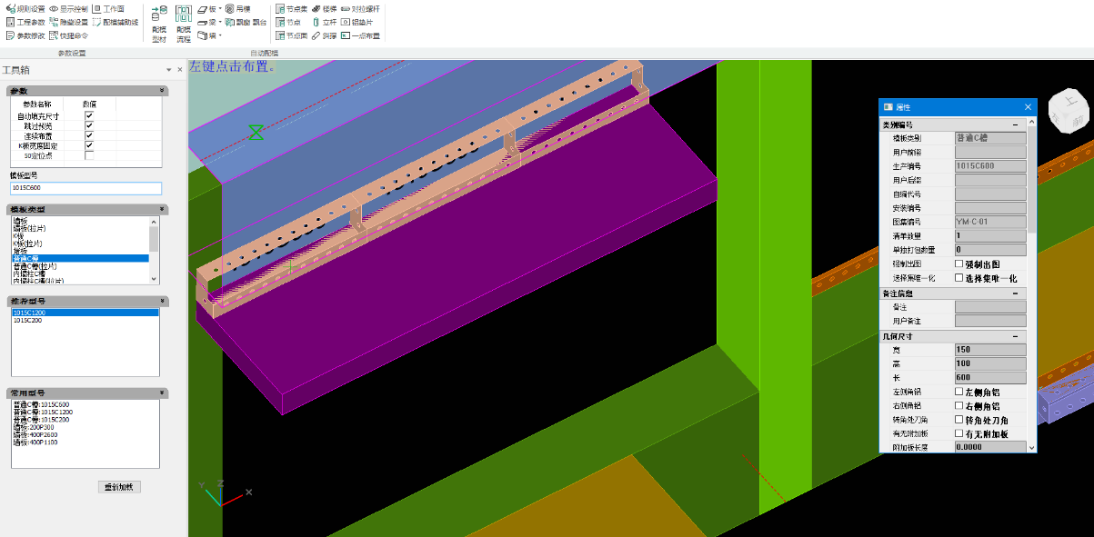 一点布置是介于自动配模和手动配模的半自动配模方式,主要应用于飘窗节点等位置,减少配模时间,提高配模效率。布置面板如下: