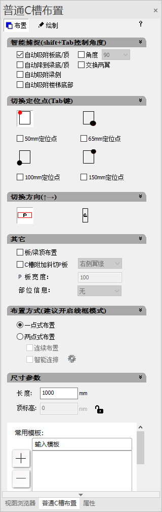 手工布置C槽过程中布置和绘制中都可勾选两翼互换。