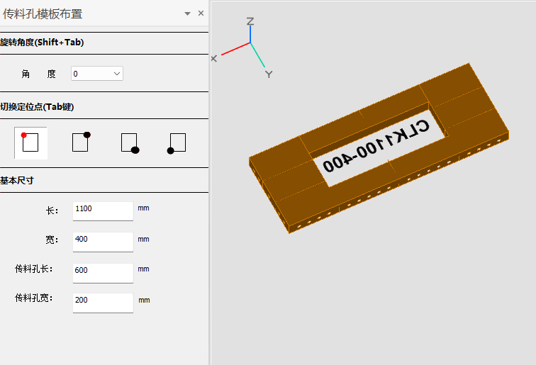 1)选择两点式布置,切换好定位点,切换好模板方向;