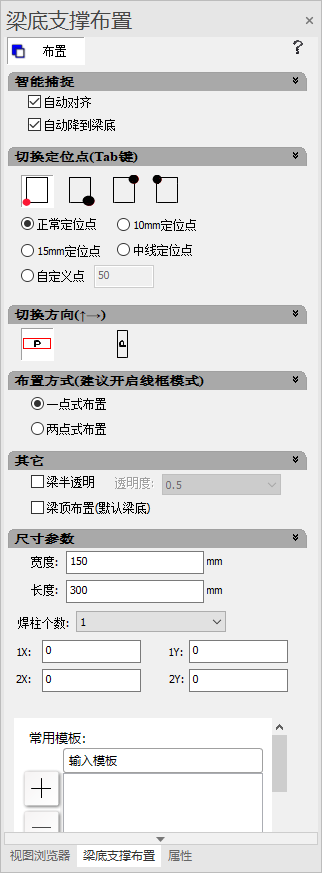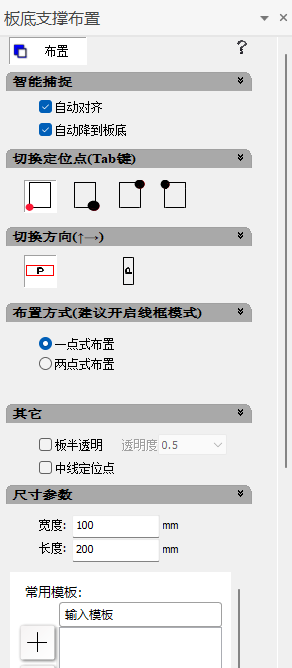 1)选择两点式布置,切换好定位点,输入模板尺寸,切换好模板方向;