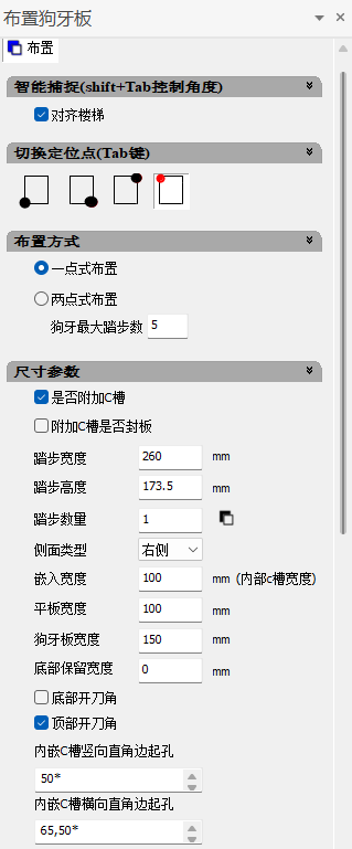 (2)勾选对齐楼梯,设置狗牙尺寸参数;