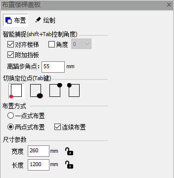 2)勾选对齐楼梯(可勾选附加挡板,则挡板、盖板同时布置);