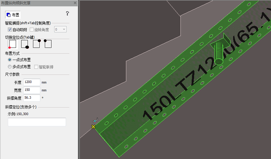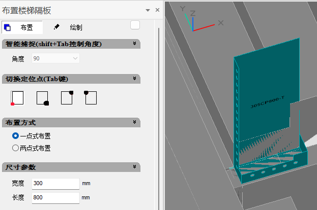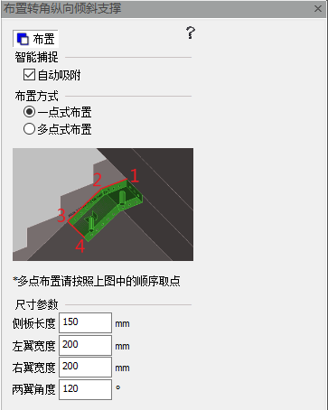 (1)点击“楼梯纵向支撑”(默认勾选自动吸附),选择一点式布置;