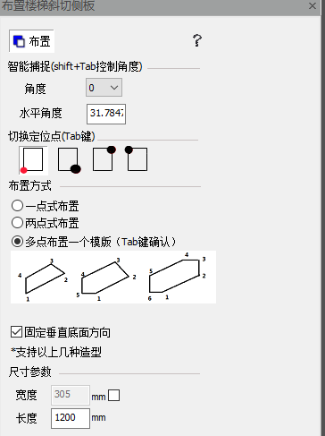 (1)点击“斜切侧板”,选择多点布置一个模板;