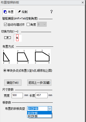 1)点击“布置楼梯顶板”,选择两点式布置;