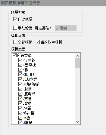 模板类型中可以对模板进行选择过滤,勾选需要手动修复的模板类型。