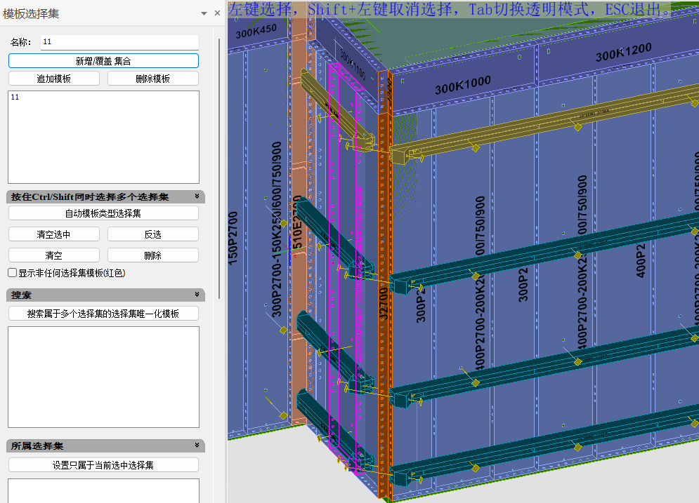 可将选择的模板(单个或多个),分组保存,便于查看批量选择的构件。