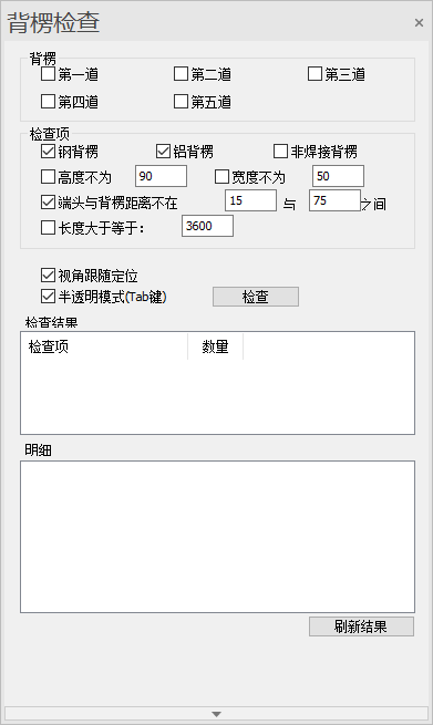 (2)可勾选第一~五道背楞,检查项可勾选非焊接背楞和宽度不为50;