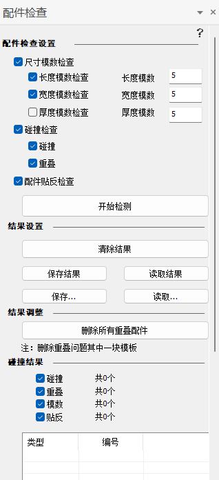 检查配件模数及碰撞: