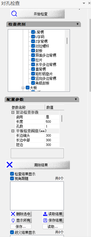 注意:碰撞检查及孔位检查出的结果可以进行选中,点击“删除选中”此条检查结果会到歧义结果中。可以手动勾选是否需要查看歧义结果