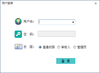 (1)点击质量审核按钮,弹出登录界面(如图6-5-1),登录时选择普通权限将不能对构件进行审核,只能查看已经审核的构件,只有选择审核人及管理员权限时能够对构件进行审核。(注:现在还未加上用户注册机制,所以暂不用输入密码。)