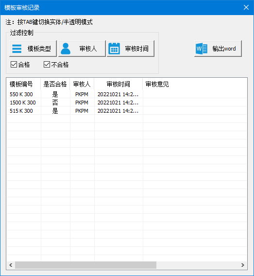 可以查看已审核的记录,并且根据构件类型、审核人、审核时间、是否合格等过滤条件快速定位到用户想查看到的内容。点击列表中某一条审核记录,可以直接在视图中定位到某一构件。