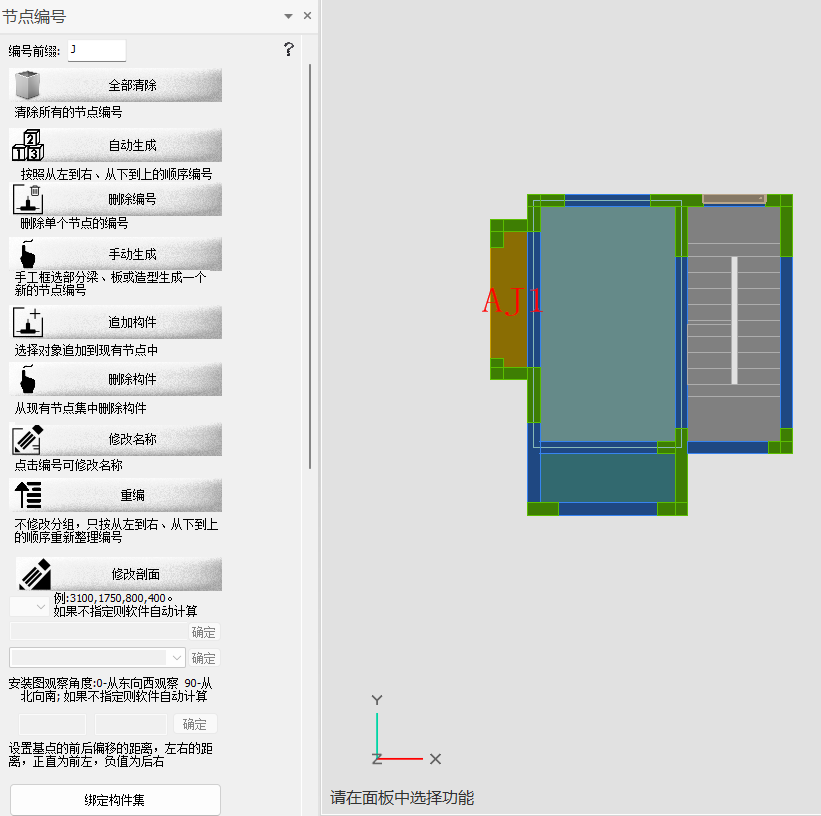 点击“手动生成”按钮,需要选择要生成节点编号的构件,右键确定生成,Ecs取消。