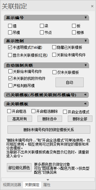 (2)选择结构与其关联,右键完成后自动添加到列表中。在列表选择时,自动定位并显示,便于把结构与构件进行分组管理;