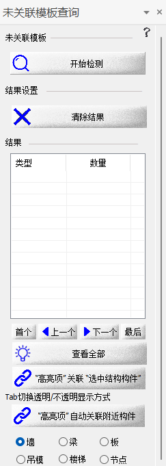 点击“未关联模板”,检测所有的构件与结构没有关联的项,可点击查看高亮显示,便于把结构与构件进行分组管理。