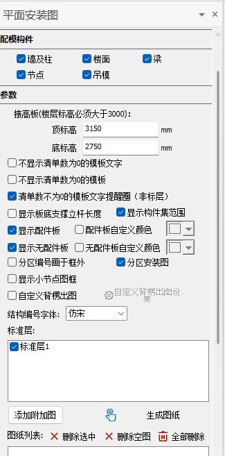 3.系统生成的安装图列表中,可对标准层进行删除。