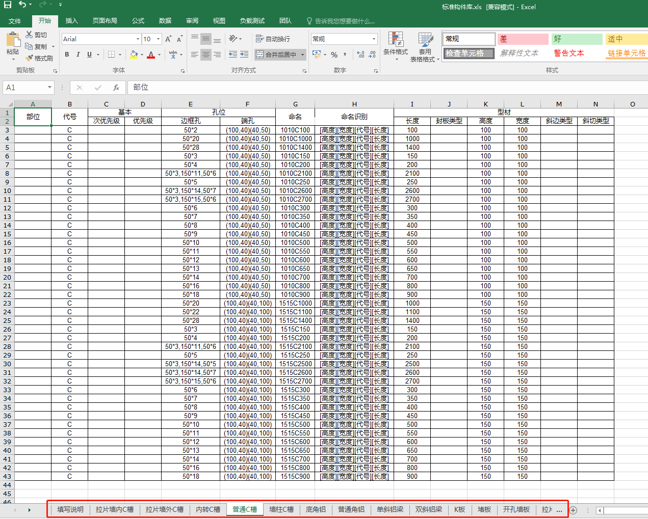 在导出的标准构件库表中,进行相应修改,并将表中的名字、孔位、命名识别等进行对应修改。