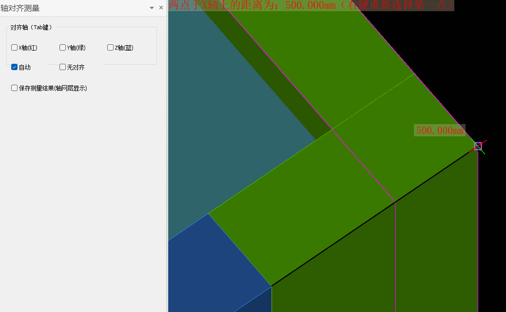 点击“轴对齐测量”,(默认快捷键DI)可以勾选锁定按轴向测量或者自动按鼠标朝向方向轴测量,如图13-3-1。勾选保留测量结果,测量数据会保留。