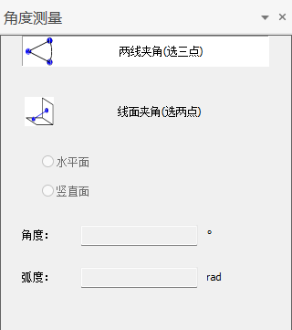 线面夹角:先选择水平面或者竖直面,再选择线上两点,就可以测量出线与水平面或者竖向面的夹角。