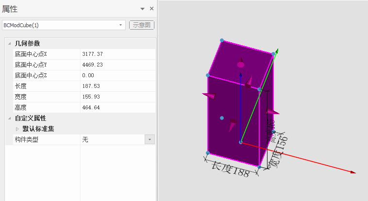 绘制完成的三维实体,可以使用属性面板参数输入或者夹点拖拽对三维实体进行修改,如图14-3-1。