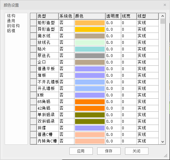 调节整体颜色:可选择结构、铝模修改各构件的显示颜色