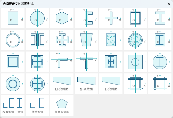 如果需要更改截面类型,点【截面类型】右侧的…按钮,弹出截面类型选择对话框,选择相应的截面类型即可。