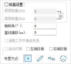 【标高设置】:不勾选时【梁顶标高1】和【梁顶标高2】置灰不可输入,此时可通过捕捉水平辅助线进行梁布置;勾选后可通过输入两端的梁顶标高绝对标高值(单位为m)进行梁的布置。