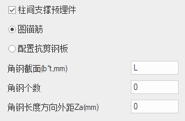 【柱间支撑预埋件】当预埋件按拉弯剪配置,可勾选“柱间支撑预埋件”,此时可单选采用圆锚筋或是抗剪钢板,并设置对应的参数。