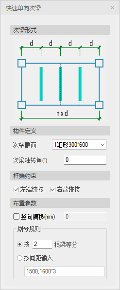 【划分规则】:提供【按梁等分】和【按间距输入】单向选择。