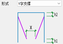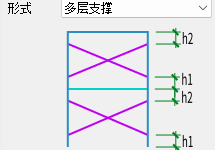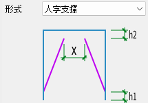 提供【交叉支撑】【人字支撑】【V字支撑】【多层支撑】四种形式,可通过下拉框切换,各形式布置参数如图所示。