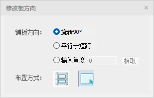 点击菜单中【改板方向】图标后在中弹出【修改板方向】对话框,支持修改花纹钢板、钢格栅板和压型钢板的铺板方向。