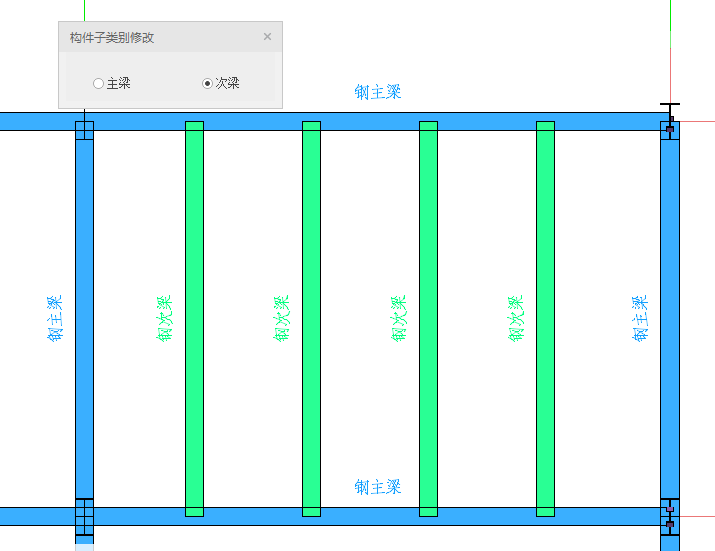 目录 搜索 展开 更新说明20251230版本更新说明更新概要1.协同模块更新点1.1通用机制1.2识图表收资⭐1.2.1操作流程介绍1.2.2功能特点1.3数据收资1.4接口1.4.1工艺协同类软件接口1.4.2计算类软件接口2.上部建模模块更新点2.1通用建模2.1.1工作树⭐2.1.2布置修改2.1.3高分屏适配⭐2.1.4楼板优化2.2快速建模⭐2.2.2快速布置水平撑2.2.1快速悬臂构件2.2.3快速洞边梁2.3智能建模2.3.1设备支架自动布梁2.4附属建模2.4.1直梯栏杆适配参数库模式2.4.2栏杆打断交互⭐3.计算模块更新点3.1荷载导荷3.2振动计算⭐3.3工况优化4.出图模块更新点4.1优化功能4.2新增海外出图模式5.基础模块更新点5.1基础模块更新点⭐5.2设备基础模块更新点5.2.1支持SH/T 3030-2025 石油化工塔型设备基础设计规范⭐5.2.2球形储罐设备及设备基础建模5.2.3支持卧式三支墩建模及计算5.2.4其他更新点1.总体介绍1.1基本功能介绍1.1.1 协同1.1.2 建模1.1.3 计算1.1.4 节点设计1.1.5 出图1.1.6 算量1.2软件界面1.2.1 菜单栏1.2.2 图形空间1.2.3 项目树1.2.4 快捷命令2.轴网2.1导入模型2.1.1导入PMCAD2.1.2增量导入PMcad2.2轴网标高2.2.1轴网标高2.2.2轴网编辑2.2.3标高编辑2.3工作面2.3.1创建工作面2.3.2工作面管理器2.3.3退出工作面2.3.4工作面的快捷按钮2.4修改工具2.4.1移动2.4.2复制2.4.3旋转2.4.4镜像2.4.5阵列2.4.6删除2.4.7拉伸2.4.8延伸2.4.9起坡2.5测量工具2.5.1测量长度2.5.2测量角度2.5.3测量面积2.5.4测量标高2.5.5测量坐标3.主构件3.1上部构件3.1.1柱3.1.2梁3.1.3支撑3.1.4快速次梁3.1.5快速支撑3.1.6拾取布置3.1.7截面刷3.2楼板3.2.1混凝土板3.2.2花纹钢板3.2.3钢格栅板3.2.4压型钢板3.2.5洞口3.2.6全房间洞3.2.7楼板设置3.2.8改板方向3.3修改3.3.1偏心对齐3.3.2构件删除3.3.3标高复制3.3.4主次梁3.3.5梁合并3.3.6梁拆分3.4基础构件3.4.1桩基3.5材料定义3.5.1全局材料3.5.2材料修改3.6显示3.6.1截面显示3.6.2构件显示3.6.3构件查找3.6.43D剖切3.6.5退出剖切4.附属构件4.1楼梯栏杆4.1.1钢直梯4.1.2钢斜梯4.1.3栏杆4.2附加构件4.2.1预埋件4.2.2地脚螺栓4.2.3翻边4.2.4钢平台4.2.5钢通道4.2.6支墩4.2.7支架4.2.8支吊架4.2.9T型支架4.2.10板式支架5.设备基础5.1收资5.1.1设备条件5.2地质资料5.2.1地质资料5.3总参5.3.1统一规定5.3.2自动生成基础规则5.4设备基础5.4.1卧式冷换设备基础5.4.2卧式容器基础5.4.3塔型设备基础5.4.4立式容器基础5.4.6管墩基础5.5设备支架5.5.1立式设备支架5.5.2卧式设备支架5.6汇总表5.6.1设备基础汇总表5.7计算6.协同6.1设备条件6.2工艺提资6.2.1荷载收资6.2.2洞口收资6.2.3埋件收资6.3智能生成6.3.1自动布梁6.4专业协同6.4.1发布设置6.4.2发布版本6.4.3参照6.5链接模型6.5.1链接P3D6.5.2链接管理7.荷载7.1荷载设置7.1.1工况管理7.1.2导荷方式7.1.3荷载显示7.2荷载布置7.2.1梁荷载7.2.2柱荷载7.2.3板均布荷载7.2.4板局部荷载7.2.5节点荷载7.3荷载快速布置7.3.1快速布置点荷载7.3.2快速布置线荷载7.3.3快速布置面荷载7.4荷载编辑7.4.1荷载修改7.4.2荷载删除7.4.3荷载清理7.4.4拾取布置7.5约束指定7.5.1支座约束7.5.2杆端约束7.5.3支座约束删除8.计算分析8.1设计层8.1.1模型检查8.1.2划分设计层8.2计算8.2.1生成分析模型8.2.2计算参数8.2.3计算8.3结果8.3.1数检定位8.3.2结果查看9.钢节点设计9.1导入结果9.1.1读取计算9.2设计方式9.3规格化节点设计9.3.1通用参数9.3.2节点配置9.3.3节点生成9.4按内力生成节点9.4.1节点参数9.4.2节点生成9.4.3节点归并9.5修改节点9.5.1节点修改9.5.2节点表修改9.6节点查询9.6.1节点设计结果9.6.2节点计算书9.6.3编号显示9.7内力查看9.8清除数据10.图纸10.1参数10.1.1 文字标准10.1.2 绘图参数10.2生成视图映射10.2.1 平面图10.2.2 立面图10.2.3 大样图10.2.4 节点图10.3填充修改10.4生成图纸10.5清单统计10.5.1 统计参数10.5.2 生成清单10.6导出图纸 暂无相关搜索结果! 3.3.4主次梁 点击菜单中【主次梁】图标后在屏幕左侧弹出【构件子类别修改】面板,可进行主次梁的指定。且各梁的中部可以显示当前的构件子类别。 选择目标构件子类别,然后再主视口中点选或框选梁构件,右键确认后修改成功。