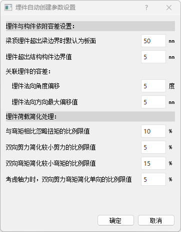 埋件自动创建参数设置对话框