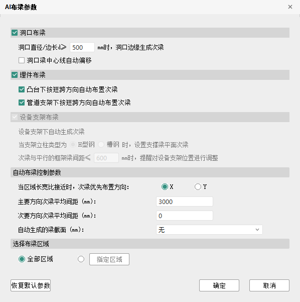 通过【智能生成】-【自动布梁】打开自动布梁对话框