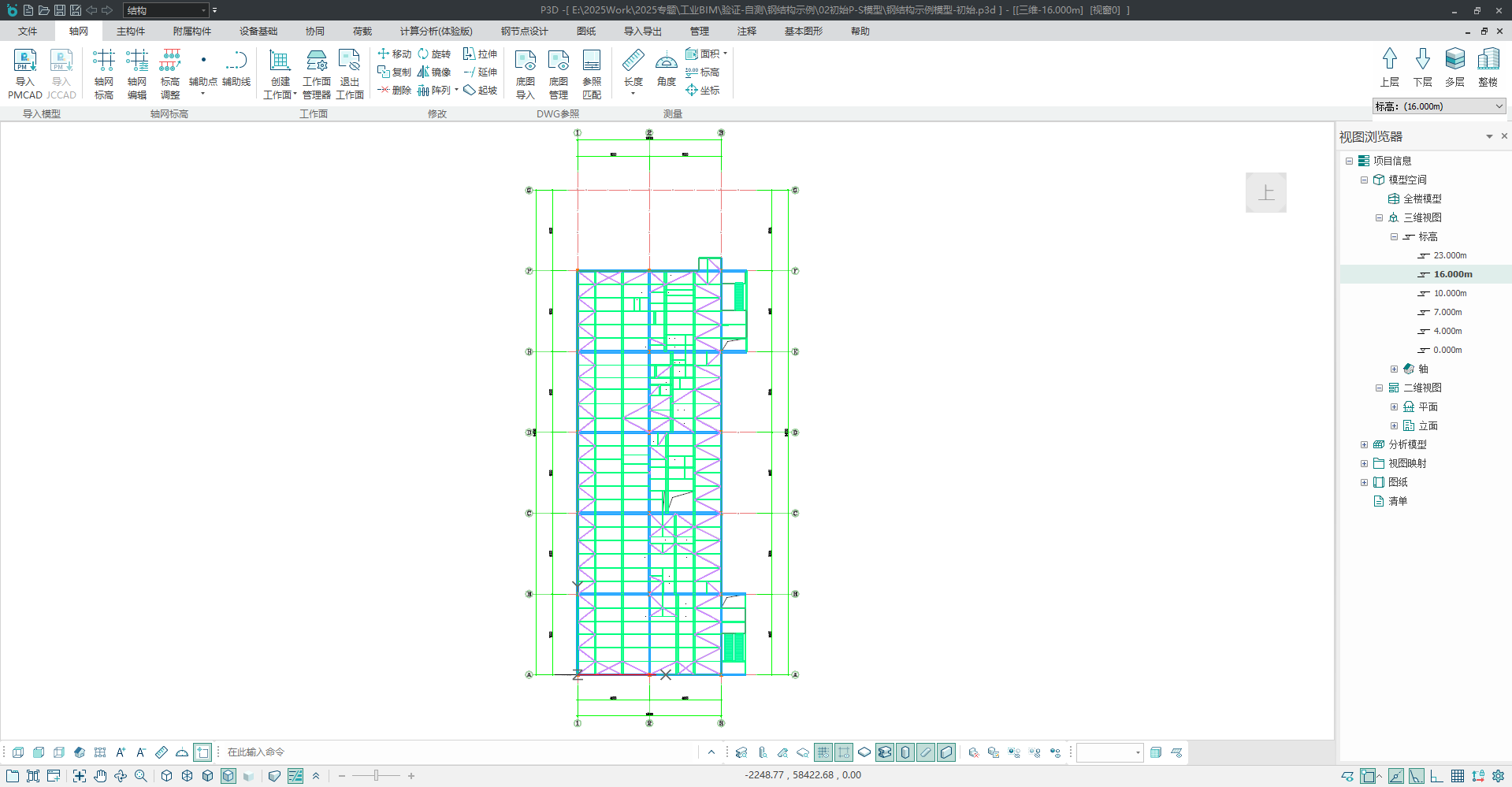目录 搜索 展开 更新说明20251230版本更新说明更新概要1.协同模块更新点1.1通用机制1.2识图表收资⭐1.2.1操作流程介绍1.2.2功能特点1.3数据收资1.4接口1.4.1工艺协同类软件接口1.4.2计算类软件接口2.上部建模模块更新点2.1通用建模2.1.1工作树⭐2.1.2布置修改2.1.3高分屏适配⭐2.1.4楼板优化2.2快速建模⭐2.2.2快速布置水平撑2.2.1快速悬臂构件2.2.3快速洞边梁2.3智能建模2.3.1设备支架自动布梁2.4附属建模2.4.1直梯栏杆适配参数库模式2.4.2栏杆打断交互⭐3.计算模块更新点3.1荷载导荷3.2振动计算⭐3.3工况优化4.出图模块更新点4.1优化功能4.2新增海外出图模式5.基础模块更新点5.1基础模块更新点⭐5.2设备基础模块更新点5.2.1支持SH/T 3030-2025 石油化工塔型设备基础设计规范⭐5.2.2球形储罐设备及设备基础建模5.2.3支持卧式三支墩建模及计算5.2.4其他更新点1.总体介绍1.1基本功能介绍1.1.1 协同1.1.2 建模1.1.3 计算1.1.4 节点设计1.1.5 出图1.1.6 算量1.2软件界面1.2.1 菜单栏1.2.2 图形空间1.2.3 项目树1.2.4 快捷命令2.轴网2.1导入模型2.1.1导入PMCAD2.1.2增量导入PMcad2.2轴网标高2.2.1轴网标高2.2.2轴网编辑2.2.3标高编辑2.3工作面2.3.1创建工作面2.3.2工作面管理器2.3.3退出工作面2.3.4工作面的快捷按钮2.4修改工具2.4.1移动2.4.2复制2.4.3旋转2.4.4镜像2.4.5阵列2.4.6删除2.4.7拉伸2.4.8延伸2.4.9起坡2.5测量工具2.5.1测量长度2.5.2测量角度2.5.3测量面积2.5.4测量标高2.5.5测量坐标3.主构件3.1上部构件3.1.1柱3.1.2梁3.1.3支撑3.1.4快速次梁3.1.5快速支撑3.1.6拾取布置3.1.7截面刷3.2楼板3.2.1混凝土板3.2.2花纹钢板3.2.3钢格栅板3.2.4压型钢板3.2.5洞口3.2.6全房间洞3.2.7楼板设置3.2.8改板方向3.3修改3.3.1偏心对齐3.3.2构件删除3.3.3标高复制3.3.4主次梁3.3.5梁合并3.3.6梁拆分3.4基础构件3.4.1桩基3.5材料定义3.5.1全局材料3.5.2材料修改3.6显示3.6.1截面显示3.6.2构件显示3.6.3构件查找3.6.43D剖切3.6.5退出剖切4.附属构件4.1楼梯栏杆4.1.1钢直梯4.1.2钢斜梯4.1.3栏杆4.2附加构件4.2.1预埋件4.2.2地脚螺栓4.2.3翻边4.2.4钢平台4.2.5钢通道4.2.6支墩4.2.7支架4.2.8支吊架4.2.9T型支架4.2.10板式支架5.设备基础5.1收资5.1.1设备条件5.2地质资料5.2.1地质资料5.3总参5.3.1统一规定5.3.2自动生成基础规则5.4设备基础5.4.1卧式冷换设备基础5.4.2卧式容器基础5.4.3塔型设备基础5.4.4立式容器基础5.4.6管墩基础5.5设备支架5.5.1立式设备支架5.5.2卧式设备支架5.6汇总表5.6.1设备基础汇总表5.7计算6.协同6.1设备条件6.2工艺提资6.2.1荷载收资6.2.2洞口收资6.2.3埋件收资6.3智能生成6.3.1自动布梁6.4专业协同6.4.1发布设置6.4.2发布版本6.4.3参照6.5链接模型6.5.1链接P3D6.5.2链接管理7.荷载7.1荷载设置7.1.1工况管理7.1.2导荷方式7.1.3荷载显示7.2荷载布置7.2.1梁荷载7.2.2柱荷载7.2.3板均布荷载7.2.4板局部荷载7.2.5节点荷载7.3荷载快速布置7.3.1快速布置点荷载7.3.2快速布置线荷载7.3.3快速布置面荷载7.4荷载编辑7.4.1荷载修改7.4.2荷载删除7.4.3荷载清理7.4.4拾取布置7.5约束指定7.5.1支座约束7.5.2杆端约束7.5.3支座约束删除8.计算分析8.1设计层8.1.1模型检查8.1.2划分设计层8.2计算8.2.1生成分析模型8.2.2计算参数8.2.3计算8.3结果8.3.1数检定位8.3.2结果查看9.钢节点设计9.1导入结果9.1.1读取计算9.2设计方式9.3规格化节点设计9.3.1通用参数9.3.2节点配置9.3.3节点生成9.4按内力生成节点9.4.1节点参数9.4.2节点生成9.4.3节点归并9.5修改节点9.5.1节点修改9.5.2节点表修改9.6节点查询9.6.1节点设计结果9.6.2节点计算书9.6.3编号显示9.7内力查看9.8清除数据10.图纸10.1参数10.1.1 文字标准10.1.2 绘图参数10.2生成视图映射10.2.1 平面图10.2.2 立面图10.2.3 大样图10.2.4 节点图10.3填充修改10.4生成图纸10.5清单统计10.5.1 统计参数10.5.2 生成清单10.6导出图纸 暂无相关搜索结果! 1.2软件界面 软件界面采用ribbon风格,分为菜单栏、图形空间、项目树、快捷工具四个功能区域,配合使用可以完成项目工程的专业间协同、模型创建、计算、节点设计、生成施工图以及算量全流程设计。 上侧菜单栏集成了软件主要功能,包括轴网、主构件、附属构件、设备基础等构件建模以及协同、出图、钢节点设计、接口等功能。中间为模型和图纸显示区域;右侧项目树集成了三维模型、二维平面、分析模型以及图纸等显示标签;下侧快捷工具区域集成了常用的快捷命令按钮,包括建模及控制显示等功能;