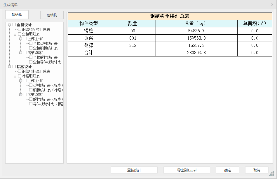 目录 搜索 展开 更新说明20251230版本更新说明更新概要1.协同模块更新点1.1通用机制1.2识图表收资⭐1.2.1操作流程介绍1.2.2功能特点1.3数据收资1.4接口1.4.1工艺协同类软件接口1.4.2计算类软件接口2.上部建模模块更新点2.1通用建模2.1.1工作树⭐2.1.2布置修改2.1.3高分屏适配⭐2.1.4楼板优化2.2快速建模⭐2.2.2快速布置水平撑2.2.1快速悬臂构件2.2.3快速洞边梁2.3智能建模2.3.1设备支架自动布梁2.4附属建模2.4.1直梯栏杆适配参数库模式2.4.2栏杆打断交互⭐3.计算模块更新点3.1荷载导荷3.2振动计算⭐3.3工况优化4.出图模块更新点4.1优化功能4.2新增海外出图模式5.基础模块更新点5.1基础模块更新点⭐5.2设备基础模块更新点5.2.1支持SH/T 3030-2025 石油化工塔型设备基础设计规范⭐5.2.2球形储罐设备及设备基础建模5.2.3支持卧式三支墩建模及计算5.2.4其他更新点1.总体介绍1.1基本功能介绍1.1.1 协同1.1.2 建模1.1.3 计算1.1.4 节点设计1.1.5 出图1.1.6 算量1.2软件界面1.2.1 菜单栏1.2.2 图形空间1.2.3 项目树1.2.4 快捷命令2.轴网2.1导入模型2.1.1导入PMCAD2.1.2增量导入PMcad2.2轴网标高2.2.1轴网标高2.2.2轴网编辑2.2.3标高编辑2.3工作面2.3.1创建工作面2.3.2工作面管理器2.3.3退出工作面2.3.4工作面的快捷按钮2.4修改工具2.4.1移动2.4.2复制2.4.3旋转2.4.4镜像2.4.5阵列2.4.6删除2.4.7拉伸2.4.8延伸2.4.9起坡2.5测量工具2.5.1测量长度2.5.2测量角度2.5.3测量面积2.5.4测量标高2.5.5测量坐标3.主构件3.1上部构件3.1.1柱3.1.2梁3.1.3支撑3.1.4快速次梁3.1.5快速支撑3.1.6拾取布置3.1.7截面刷3.2楼板3.2.1混凝土板3.2.2花纹钢板3.2.3钢格栅板3.2.4压型钢板3.2.5洞口3.2.6全房间洞3.2.7楼板设置3.2.8改板方向3.3修改3.3.1偏心对齐3.3.2构件删除3.3.3标高复制3.3.4主次梁3.3.5梁合并3.3.6梁拆分3.4基础构件3.4.1桩基3.5材料定义3.5.1全局材料3.5.2材料修改3.6显示3.6.1截面显示3.6.2构件显示3.6.3构件查找3.6.43D剖切3.6.5退出剖切4.附属构件4.1楼梯栏杆4.1.1钢直梯4.1.2钢斜梯4.1.3栏杆4.2附加构件4.2.1预埋件4.2.2地脚螺栓4.2.3翻边4.2.4钢平台4.2.5钢通道4.2.6支墩4.2.7支架4.2.8支吊架4.2.9T型支架4.2.10板式支架5.设备基础5.1收资5.1.1设备条件5.2地质资料5.2.1地质资料5.3总参5.3.1统一规定5.3.2自动生成基础规则5.4设备基础5.4.1卧式冷换设备基础5.4.2卧式容器基础5.4.3塔型设备基础5.4.4立式容器基础5.4.6管墩基础5.5设备支架5.5.1立式设备支架5.5.2卧式设备支架5.6汇总表5.6.1设备基础汇总表5.7计算6.协同6.1设备条件6.2工艺提资6.2.1荷载收资6.2.2洞口收资6.2.3埋件收资6.3智能生成6.3.1自动布梁6.4专业协同6.4.1发布设置6.4.2发布版本6.4.3参照6.5链接模型6.5.1链接P3D6.5.2链接管理7.荷载7.1荷载设置7.1.1工况管理7.1.2导荷方式7.1.3荷载显示7.2荷载布置7.2.1梁荷载7.2.2柱荷载7.2.3板均布荷载7.2.4板局部荷载7.2.5节点荷载7.3荷载快速布置7.3.1快速布置点荷载7.3.2快速布置线荷载7.3.3快速布置面荷载7.4荷载编辑7.4.1荷载修改7.4.2荷载删除7.4.3荷载清理7.4.4拾取布置7.5约束指定7.5.1支座约束7.5.2杆端约束7.5.3支座约束删除8.计算分析8.1设计层8.1.1模型检查8.1.2划分设计层8.2计算8.2.1生成分析模型8.2.2计算参数8.2.3计算8.3结果8.3.1数检定位8.3.2结果查看9.钢节点设计9.1导入结果9.1.1读取计算9.2设计方式9.3规格化节点设计9.3.1通用参数9.3.2节点配置9.3.3节点生成9.4按内力生成节点9.4.1节点参数9.4.2节点生成9.4.3节点归并9.5修改节点9.5.1节点修改9.5.2节点表修改9.6节点查询9.6.1节点设计结果9.6.2节点计算书9.6.3编号显示9.7内力查看9.8清除数据10.图纸10.1参数10.1.1 文字标准10.1.2 绘图参数10.2生成视图映射10.2.1 平面图10.2.2 立面图10.2.3 大样图10.2.4 节点图10.3填充修改10.4生成图纸10.5清单统计10.5.1 统计参数10.5.2 生成清单10.6导出图纸 暂无相关搜索结果! 1.1.6 算量 如前所述,软件定位为工业建筑的正向设计全过程解决方案,模型为BIM模型,包含了主体结构和附属构件,进行节点设计以后还包括节点连接板件等,基于此模型就能统计出较为详细的材料用量用于指导设计工作经济性控制。