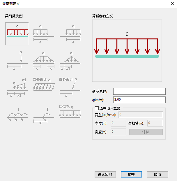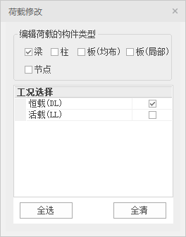 目录 搜索 展开 更新说明20251230版本更新说明更新概要1.协同模块更新点1.1通用机制1.2识图表收资⭐1.2.1操作流程介绍1.2.2功能特点1.3数据收资1.4接口1.4.1工艺协同类软件接口1.4.2计算类软件接口2.上部建模模块更新点2.1通用建模2.1.1工作树⭐2.1.2布置修改2.1.3高分屏适配⭐2.1.4楼板优化2.2快速建模⭐2.2.2快速布置水平撑2.2.1快速悬臂构件2.2.3快速洞边梁2.3智能建模2.3.1设备支架自动布梁2.4附属建模2.4.1直梯栏杆适配参数库模式2.4.2栏杆打断交互⭐3.计算模块更新点3.1荷载导荷3.2振动计算⭐3.3工况优化4.出图模块更新点4.1优化功能4.2新增海外出图模式5.基础模块更新点5.1基础模块更新点⭐5.2设备基础模块更新点5.2.1支持SH/T 3030-2025 石油化工塔型设备基础设计规范⭐5.2.2球形储罐设备及设备基础建模5.2.3支持卧式三支墩建模及计算5.2.4其他更新点1.总体介绍1.1基本功能介绍1.1.1 协同1.1.2 建模1.1.3 计算1.1.4 节点设计1.1.5 出图1.1.6 算量1.2软件界面1.2.1 菜单栏1.2.2 图形空间1.2.3 项目树1.2.4 快捷命令2.轴网2.1导入模型2.1.1导入PMCAD2.1.2增量导入PMcad2.2轴网标高2.2.1轴网标高2.2.2轴网编辑2.2.3标高编辑2.3工作面2.3.1创建工作面2.3.2工作面管理器2.3.3退出工作面2.3.4工作面的快捷按钮2.4修改工具2.4.1移动2.4.2复制2.4.3旋转2.4.4镜像2.4.5阵列2.4.6删除2.4.7拉伸2.4.8延伸2.4.9起坡2.5测量工具2.5.1测量长度2.5.2测量角度2.5.3测量面积2.5.4测量标高2.5.5测量坐标3.主构件3.1上部构件3.1.1柱3.1.2梁3.1.3支撑3.1.4快速次梁3.1.5快速支撑3.1.6拾取布置3.1.7截面刷3.2楼板3.2.1混凝土板3.2.2花纹钢板3.2.3钢格栅板3.2.4压型钢板3.2.5洞口3.2.6全房间洞3.2.7楼板设置3.2.8改板方向3.3修改3.3.1偏心对齐3.3.2构件删除3.3.3标高复制3.3.4主次梁3.3.5梁合并3.3.6梁拆分3.4基础构件3.4.1桩基3.5材料定义3.5.1全局材料3.5.2材料修改3.6显示3.6.1截面显示3.6.2构件显示3.6.3构件查找3.6.43D剖切3.6.5退出剖切4.附属构件4.1楼梯栏杆4.1.1钢直梯4.1.2钢斜梯4.1.3栏杆4.2附加构件4.2.1预埋件4.2.2地脚螺栓4.2.3翻边4.2.4钢平台4.2.5钢通道4.2.6支墩4.2.7支架4.2.8支吊架4.2.9T型支架4.2.10板式支架5.设备基础5.1收资5.1.1设备条件5.2地质资料5.2.1地质资料5.3总参5.3.1统一规定5.3.2自动生成基础规则5.4设备基础5.4.1卧式冷换设备基础5.4.2卧式容器基础5.4.3塔型设备基础5.4.4立式容器基础5.4.6管墩基础5.5设备支架5.5.1立式设备支架5.5.2卧式设备支架5.6汇总表5.6.1设备基础汇总表5.7计算6.协同6.1设备条件6.2工艺提资6.2.1荷载收资6.2.2洞口收资6.2.3埋件收资6.3智能生成6.3.1自动布梁6.4专业协同6.4.1发布设置6.4.2发布版本6.4.3参照6.5链接模型6.5.1链接P3D6.5.2链接管理7.荷载7.1荷载设置7.1.1工况管理7.1.2导荷方式7.1.3荷载显示7.2荷载布置7.2.1梁荷载7.2.2柱荷载7.2.3板均布荷载7.2.4板局部荷载7.2.5节点荷载7.3荷载快速布置7.3.1快速布置点荷载7.3.2快速布置线荷载7.3.3快速布置面荷载7.4荷载编辑7.4.1荷载修改7.4.2荷载删除7.4.3荷载清理7.4.4拾取布置7.5约束指定7.5.1支座约束7.5.2杆端约束7.5.3支座约束删除8.计算分析8.1设计层8.1.1模型检查8.1.2划分设计层8.2计算8.2.1生成分析模型8.2.2计算参数8.2.3计算8.3结果8.3.1数检定位8.3.2结果查看9.钢节点设计9.1导入结果9.1.1读取计算9.2设计方式9.3规格化节点设计9.3.1通用参数9.3.2节点配置9.3.3节点生成9.4按内力生成节点9.4.1节点参数9.4.2节点生成9.4.3节点归并9.5修改节点9.5.1节点修改9.5.2节点表修改9.6节点查询9.6.1节点设计结果9.6.2节点计算书9.6.3编号显示9.7内力查看9.8清除数据10.图纸10.1参数10.1.1 文字标准10.1.2 绘图参数10.2生成视图映射10.2.1 平面图10.2.2 立面图10.2.3 大样图10.2.4 节点图10.3填充修改10.4生成图纸10.5清单统计10.5.1 统计参数10.5.2 生成清单10.6导出图纸 暂无相关搜索结果! 7.4.1荷载修改 荷载修改可以快捷的对已布置所有类型荷载进行修改操作。点击荷载编辑菜单中【荷载修改】图标后在屏幕左侧弹出荷载修改面板。 操作方法在荷载修改面板中勾选所要修改荷载的布置构件类型及工况,图面会显示符合以上条件的荷载;左键单击所要修改的荷载数值,弹出“荷载定义”参数框,如下图,在此荷载定义框内修改荷载数值,点击确定,完成相应荷载的修改。注意,其他荷载类型会绘制不允许修改。