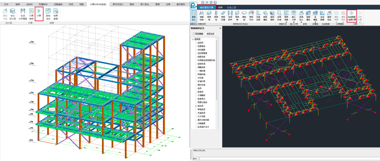 目录 搜索 展开 更新说明20251230版本更新说明更新概要1.协同模块更新点1.1通用机制1.2识图表收资⭐1.2.1操作流程介绍1.2.2功能特点1.3数据收资1.4接口1.4.1工艺协同类软件接口1.4.2计算类软件接口2.上部建模模块更新点2.1通用建模2.1.1工作树⭐2.1.2布置修改2.1.3高分屏适配⭐2.1.4楼板优化2.2快速建模⭐2.2.2快速布置水平撑2.2.1快速悬臂构件2.2.3快速洞边梁2.3智能建模2.3.1设备支架自动布梁2.4附属建模2.4.1直梯栏杆适配参数库模式2.4.2栏杆打断交互⭐3.计算模块更新点3.1荷载导荷3.2振动计算⭐3.3工况优化4.出图模块更新点4.1优化功能4.2新增海外出图模式5.基础模块更新点5.1基础模块更新点⭐5.2设备基础模块更新点5.2.1支持SH/T 3030-2025 石油化工塔型设备基础设计规范⭐5.2.2球形储罐设备及设备基础建模5.2.3支持卧式三支墩建模及计算5.2.4其他更新点1.总体介绍1.1基本功能介绍1.1.1 协同1.1.2 建模1.1.3 计算1.1.4 节点设计1.1.5 出图1.1.6 算量1.2软件界面1.2.1 菜单栏1.2.2 图形空间1.2.3 项目树1.2.4 快捷命令2.轴网2.1导入模型2.1.1导入PMCAD2.1.2增量导入PMcad2.2轴网标高2.2.1轴网标高2.2.2轴网编辑2.2.3标高编辑2.3工作面2.3.1创建工作面2.3.2工作面管理器2.3.3退出工作面2.3.4工作面的快捷按钮2.4修改工具2.4.1移动2.4.2复制2.4.3旋转2.4.4镜像2.4.5阵列2.4.6删除2.4.7拉伸2.4.8延伸2.4.9起坡2.5测量工具2.5.1测量长度2.5.2测量角度2.5.3测量面积2.5.4测量标高2.5.5测量坐标3.主构件3.1上部构件3.1.1柱3.1.2梁3.1.3支撑3.1.4快速次梁3.1.5快速支撑3.1.6拾取布置3.1.7截面刷3.2楼板3.2.1混凝土板3.2.2花纹钢板3.2.3钢格栅板3.2.4压型钢板3.2.5洞口3.2.6全房间洞3.2.7楼板设置3.2.8改板方向3.3修改3.3.1偏心对齐3.3.2构件删除3.3.3标高复制3.3.4主次梁3.3.5梁合并3.3.6梁拆分3.4基础构件3.4.1桩基3.5材料定义3.5.1全局材料3.5.2材料修改3.6显示3.6.1截面显示3.6.2构件显示3.6.3构件查找3.6.43D剖切3.6.5退出剖切4.附属构件4.1楼梯栏杆4.1.1钢直梯4.1.2钢斜梯4.1.3栏杆4.2附加构件4.2.1预埋件4.2.2地脚螺栓4.2.3翻边4.2.4钢平台4.2.5钢通道4.2.6支墩4.2.7支架4.2.8支吊架4.2.9T型支架4.2.10板式支架5.设备基础5.1收资5.1.1设备条件5.2地质资料5.2.1地质资料5.3总参5.3.1统一规定5.3.2自动生成基础规则5.4设备基础5.4.1卧式冷换设备基础5.4.2卧式容器基础5.4.3塔型设备基础5.4.4立式容器基础5.4.6管墩基础5.5设备支架5.5.1立式设备支架5.5.2卧式设备支架5.6汇总表5.6.1设备基础汇总表5.7计算6.协同6.1设备条件6.2工艺提资6.2.1荷载收资6.2.2洞口收资6.2.3埋件收资6.3智能生成6.3.1自动布梁6.4专业协同6.4.1发布设置6.4.2发布版本6.4.3参照6.5链接模型6.5.1链接P3D6.5.2链接管理7.荷载7.1荷载设置7.1.1工况管理7.1.2导荷方式7.1.3荷载显示7.2荷载布置7.2.1梁荷载7.2.2柱荷载7.2.3板均布荷载7.2.4板局部荷载7.2.5节点荷载7.3荷载快速布置7.3.1快速布置点荷载7.3.2快速布置线荷载7.3.3快速布置面荷载7.4荷载编辑7.4.1荷载修改7.4.2荷载删除7.4.3荷载清理7.4.4拾取布置7.5约束指定7.5.1支座约束7.5.2杆端约束7.5.3支座约束删除8.计算分析8.1设计层8.1.1模型检查8.1.2划分设计层8.2计算8.2.1生成分析模型8.2.2计算参数8.2.3计算8.3结果8.3.1数检定位8.3.2结果查看9.钢节点设计9.1导入结果9.1.1读取计算9.2设计方式9.3规格化节点设计9.3.1通用参数9.3.2节点配置9.3.3节点生成9.4按内力生成节点9.4.1节点参数9.4.2节点生成9.4.3节点归并9.5修改节点9.5.1节点修改9.5.2节点表修改9.6节点查询9.6.1节点设计结果9.6.2节点计算书9.6.3编号显示9.7内力查看9.8清除数据10.图纸10.1参数10.1.1 文字标准10.1.2 绘图参数10.2生成视图映射10.2.1 平面图10.2.2 立面图10.2.3 大样图10.2.4 节点图10.3填充修改10.4生成图纸10.5清单统计10.5.1 统计参数10.5.2 生成清单10.6导出图纸 暂无相关搜索结果! 8.2.3计算 功能介绍点击【计算】按钮,程序将自动切换至SATWE前处理模块。此模块功能与PKPM主程序中的SATWE模块一致,可以在此进行特殊构件定义、荷载补充定义、施工次序定义、多塔定义、多模型定义等操作,随后生成数据并进行计算。