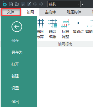 菜单栏中各项业务功能详细介绍见本手册后面章节;除业务功能外,【文件】菜单中包含了对项目工程的管理和软件基础设置。
