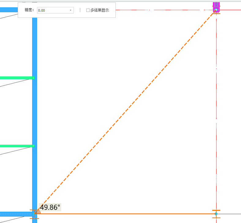 【测量角度】:三点测量角度,第1、2点连线确定基线,测量第2、3点连线相对于基线的角度,可切换显示精度。