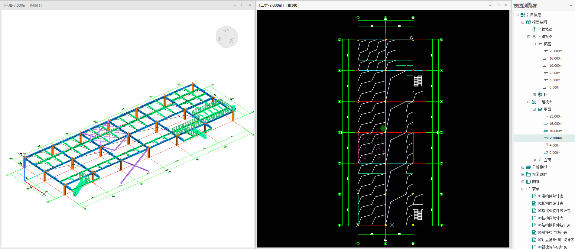 【单线图】:切换结构构件从三维轮廓变为单线显示模式;