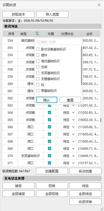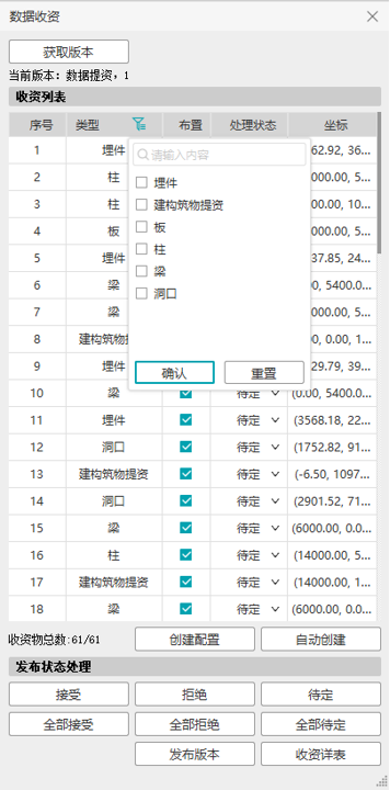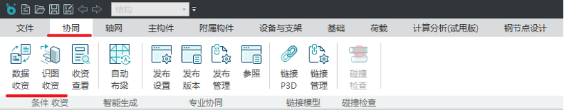 目录 搜索 展开 更新说明20251230版本更新说明更新概要1.协同模块更新点1.1通用机制1.2识图表收资⭐1.2.1操作流程介绍1.2.2功能特点1.3数据收资1.4接口1.4.1工艺协同类软件接口1.4.2计算类软件接口2.上部建模模块更新点2.1通用建模2.1.1工作树⭐2.1.2布置修改2.1.3高分屏适配⭐2.1.4楼板优化2.2快速建模⭐2.2.2快速布置水平撑2.2.1快速悬臂构件2.2.3快速洞边梁2.3智能建模2.3.1设备支架自动布梁2.4附属建模2.4.1直梯栏杆适配参数库模式2.4.2栏杆打断交互⭐3.计算模块更新点3.1荷载导荷3.2振动计算⭐3.3工况优化4.出图模块更新点4.1优化功能4.2新增海外出图模式5.基础模块更新点5.1基础模块更新点⭐5.2设备基础模块更新点5.2.1支持SH/T 3030-2025 石油化工塔型设备基础设计规范⭐5.2.2球形储罐设备及设备基础建模5.2.3支持卧式三支墩建模及计算5.2.4其他更新点1.总体介绍1.1基本功能介绍1.1.1 协同1.1.2 建模1.1.3 计算1.1.4 节点设计1.1.5 出图1.1.6 算量1.2软件界面1.2.1 菜单栏1.2.2 图形空间1.2.3 项目树1.2.4 快捷命令2.轴网2.1导入模型2.1.1导入PMCAD2.1.2增量导入PMcad2.2轴网标高2.2.1轴网标高2.2.2轴网编辑2.2.3标高编辑2.3工作面2.3.1创建工作面2.3.2工作面管理器2.3.3退出工作面2.3.4工作面的快捷按钮2.4修改工具2.4.1移动2.4.2复制2.4.3旋转2.4.4镜像2.4.5阵列2.4.6删除2.4.7拉伸2.4.8延伸2.4.9起坡2.5测量工具2.5.1测量长度2.5.2测量角度2.5.3测量面积2.5.4测量标高2.5.5测量坐标3.主构件3.1上部构件3.1.1柱3.1.2梁3.1.3支撑3.1.4快速次梁3.1.5快速支撑3.1.6拾取布置3.1.7截面刷3.2楼板3.2.1混凝土板3.2.2花纹钢板3.2.3钢格栅板3.2.4压型钢板3.2.5洞口3.2.6全房间洞3.2.7楼板设置3.2.8改板方向3.3修改3.3.1偏心对齐3.3.2构件删除3.3.3标高复制3.3.4主次梁3.3.5梁合并3.3.6梁拆分3.4基础构件3.4.1桩基3.5材料定义3.5.1全局材料3.5.2材料修改3.6显示3.6.1截面显示3.6.2构件显示3.6.3构件查找3.6.43D剖切3.6.5退出剖切4.附属构件4.1楼梯栏杆4.1.1钢直梯4.1.2钢斜梯4.1.3栏杆4.2附加构件4.2.1预埋件4.2.2地脚螺栓4.2.3翻边4.2.4钢平台4.2.5钢通道4.2.6支墩4.2.7支架4.2.8支吊架4.2.9T型支架4.2.10板式支架5.设备基础5.1收资5.1.1设备条件5.2地质资料5.2.1地质资料5.3总参5.3.1统一规定5.3.2自动生成基础规则5.4设备基础5.4.1卧式冷换设备基础5.4.2卧式容器基础5.4.3塔型设备基础5.4.4立式容器基础5.4.6管墩基础5.5设备支架5.5.1立式设备支架5.5.2卧式设备支架5.6汇总表5.6.1设备基础汇总表5.7计算6.协同6.1设备条件6.2工艺提资6.2.1荷载收资6.2.2洞口收资6.2.3埋件收资6.3智能生成6.3.1自动布梁6.4专业协同6.4.1发布设置6.4.2发布版本6.4.3参照6.5链接模型6.5.1链接P3D6.5.2链接管理7.荷载7.1荷载设置7.1.1工况管理7.1.2导荷方式7.1.3荷载显示7.2荷载布置7.2.1梁荷载7.2.2柱荷载7.2.3板均布荷载7.2.4板局部荷载7.2.5节点荷载7.3荷载快速布置7.3.1快速布置点荷载7.3.2快速布置线荷载7.3.3快速布置面荷载7.4荷载编辑7.4.1荷载修改7.4.2荷载删除7.4.3荷载清理7.4.4拾取布置7.5约束指定7.5.1支座约束7.5.2杆端约束7.5.3支座约束删除8.计算分析8.1设计层8.1.1模型检查8.1.2划分设计层8.2计算8.2.1生成分析模型8.2.2计算参数8.2.3计算8.3结果8.3.1数检定位8.3.2结果查看9.钢节点设计9.1导入结果9.1.1读取计算9.2设计方式9.3规格化节点设计9.3.1通用参数9.3.2节点配置9.3.3节点生成9.4按内力生成节点9.4.1节点参数9.4.2节点生成9.4.3节点归并9.5修改节点9.5.1节点修改9.5.2节点表修改9.6节点查询9.6.1节点设计结果9.6.2节点计算书9.6.3编号显示9.7内力查看9.8清除数据10.图纸10.1参数10.1.1 文字标准10.1.2 绘图参数10.2生成视图映射10.2.1 平面图10.2.2 立面图10.2.3 大样图10.2.4 节点图10.3填充修改10.4生成图纸10.5清单统计10.5.1 统计参数10.5.2 生成清单10.6导出图纸 暂无相关搜索结果! 1.1通用机制 整合收资流程 整合收资功能,分为“数据”和“识图”两条功能线,采用相同的流程处理不同来源的条件信息。 整合收资对象 每条收资功能线中支持同时收取多种对象信息。